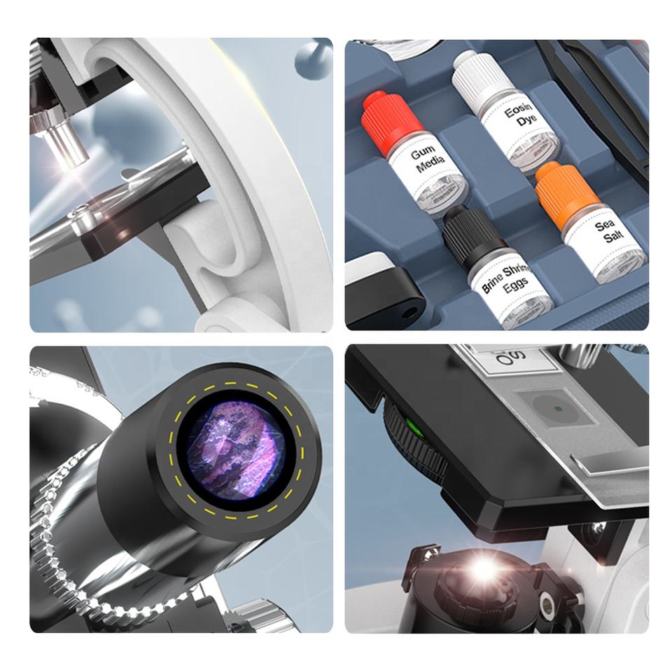 Kits de Science pour enfants, Microscope 100x1200x28 pièces, pour débutant, Kit de tige de Microscope en métal avec boîte de transport