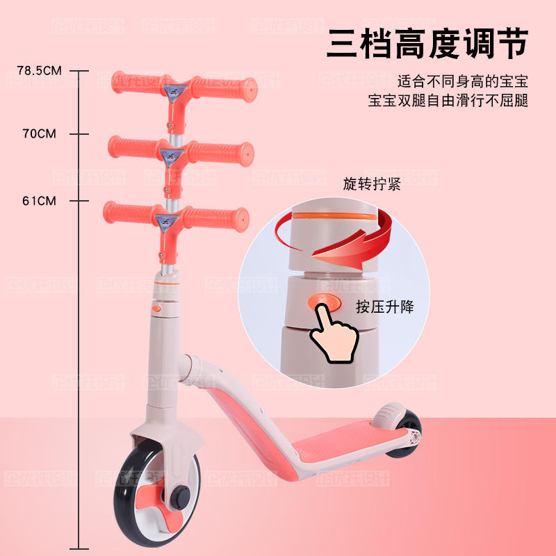 Trottinette enfant 2 en 1 avec siège réglable en hauteur pour enfants de 1 à 8 ans, à pousser, rouge et bleue