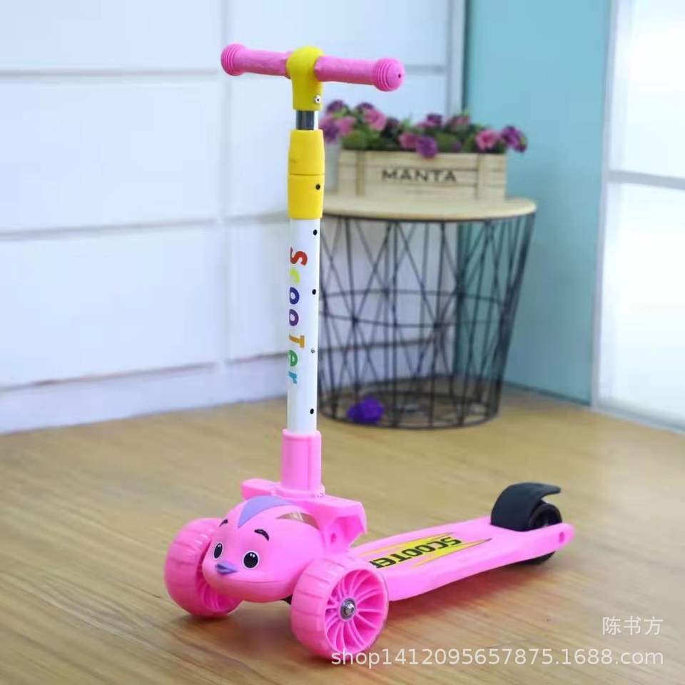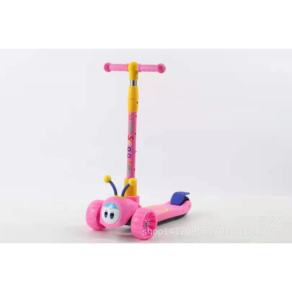 Kids Scooter 3 In 1 Foldable Height Adjustable Musical For 2-8 Years Old Children Pink Color With Fun Design