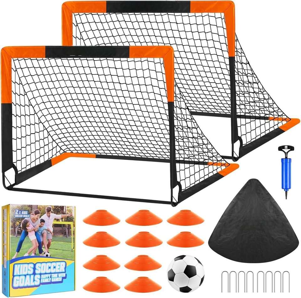 Buts de football pour enfants pour la cour, lot de 2, 4 x 3 pieds/6 x 4, but de football pour tout-petits, équipement d'entraînement avec ballon de football
