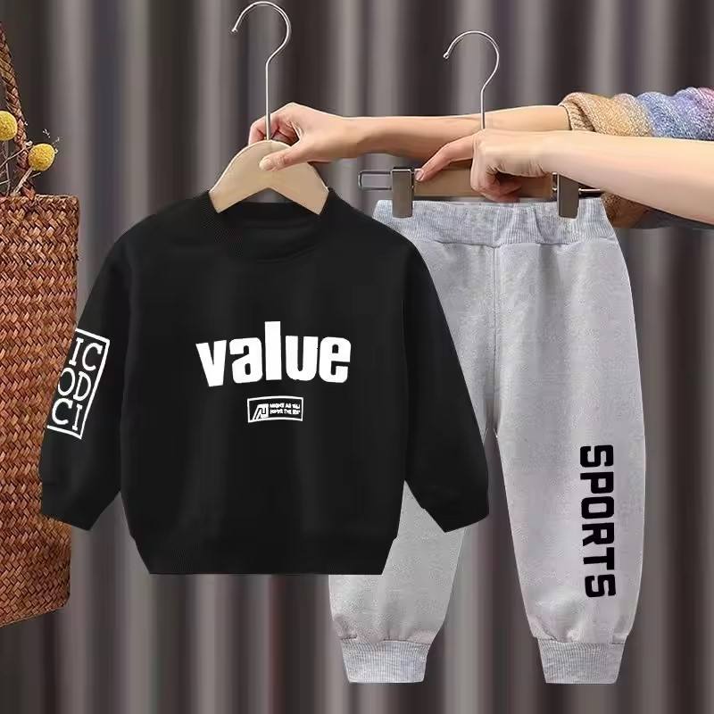 Ensemble de survêtement printanier pour enfants, sweat-shirt et pantalon en coton pour garçons et filles, vente en gros d'ensembles de survêtement printaniers pour enfants, coton unisexe