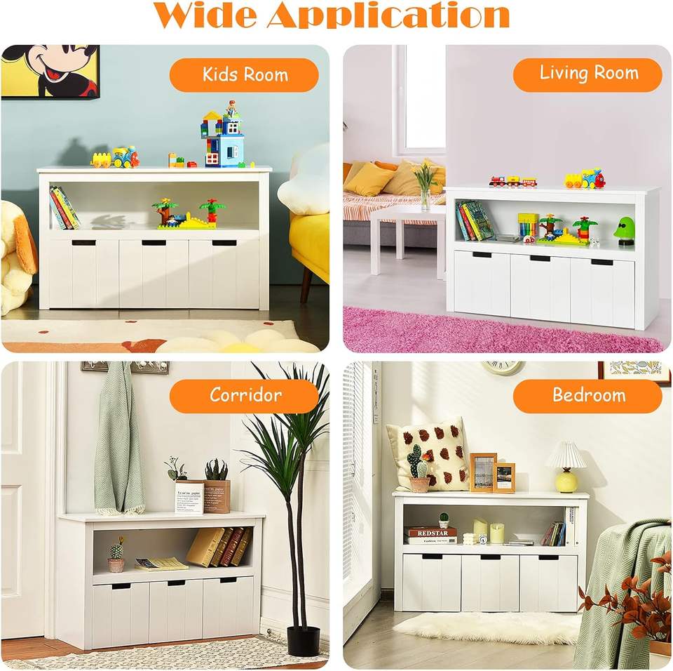 Kids Toy Storage Organizer Box Cabinet with Bookshelf and Wooden Children Toy Bin Chest for Home