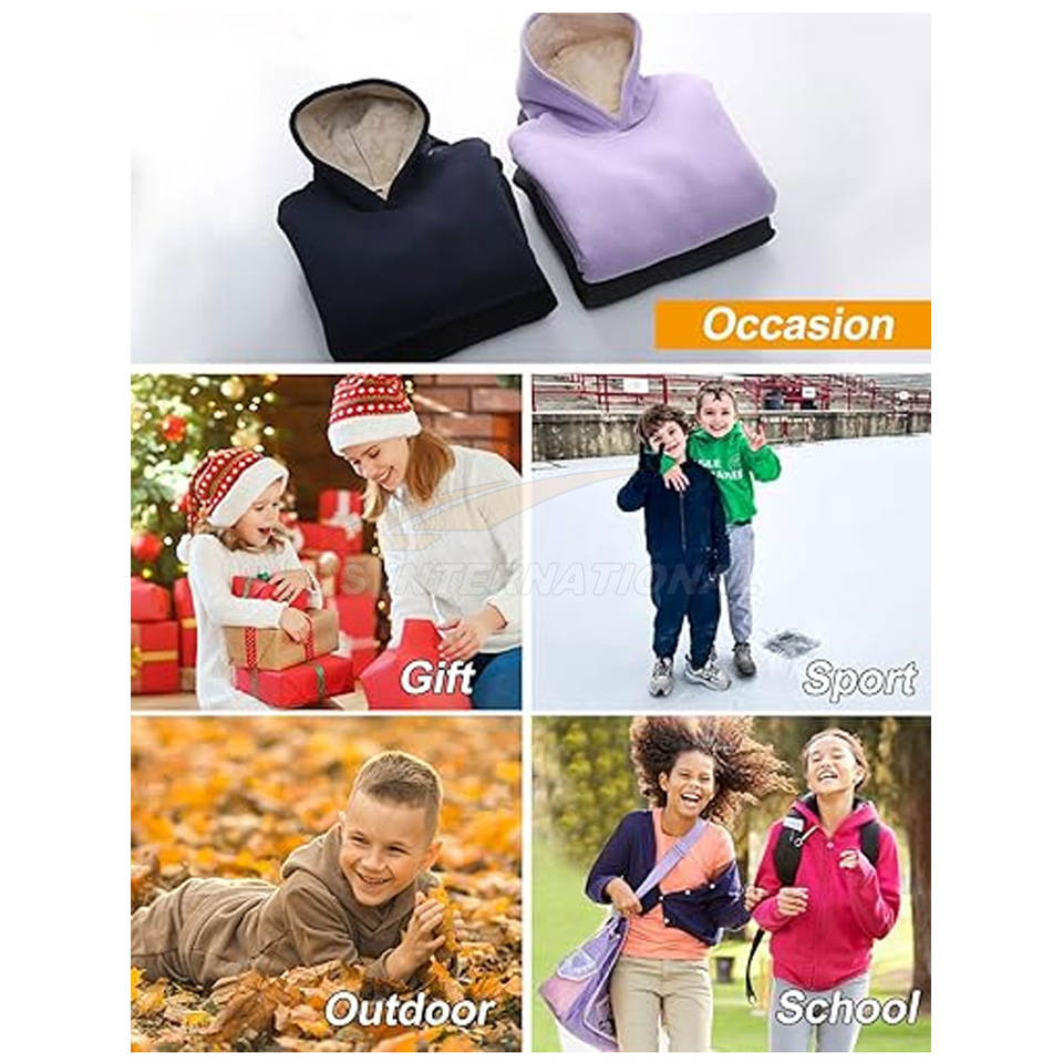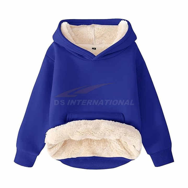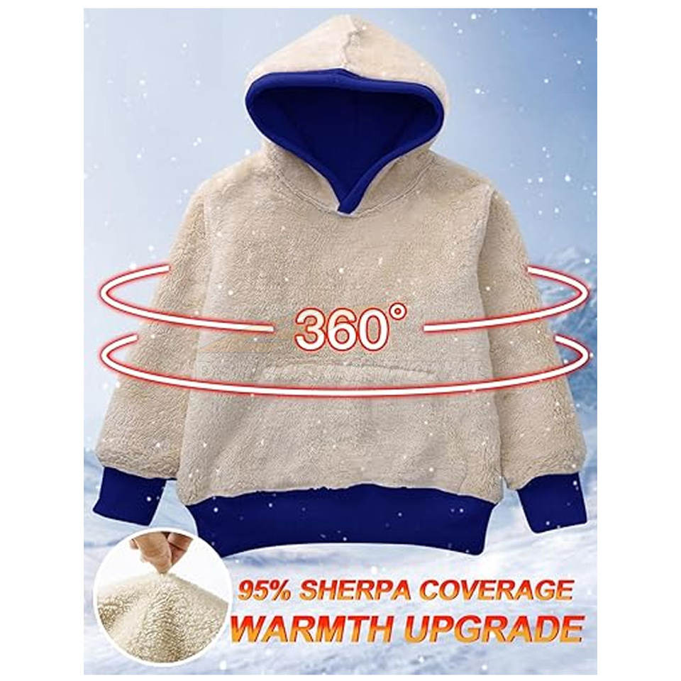 Kids Warm Sherpa Hoodie Fleece Lined Pullover Sweatshirt Thick Winter Hooded Sweater Royal Blue Color