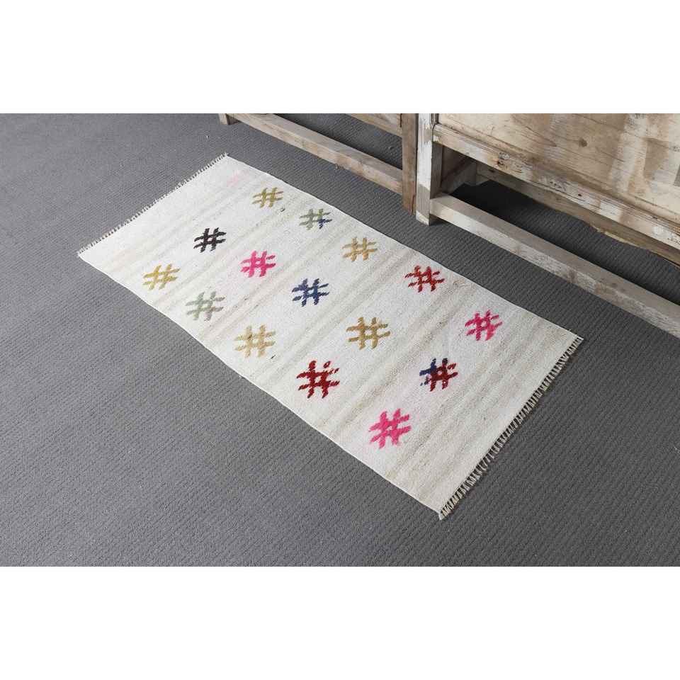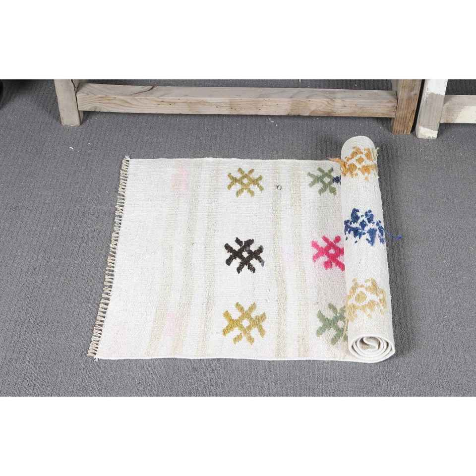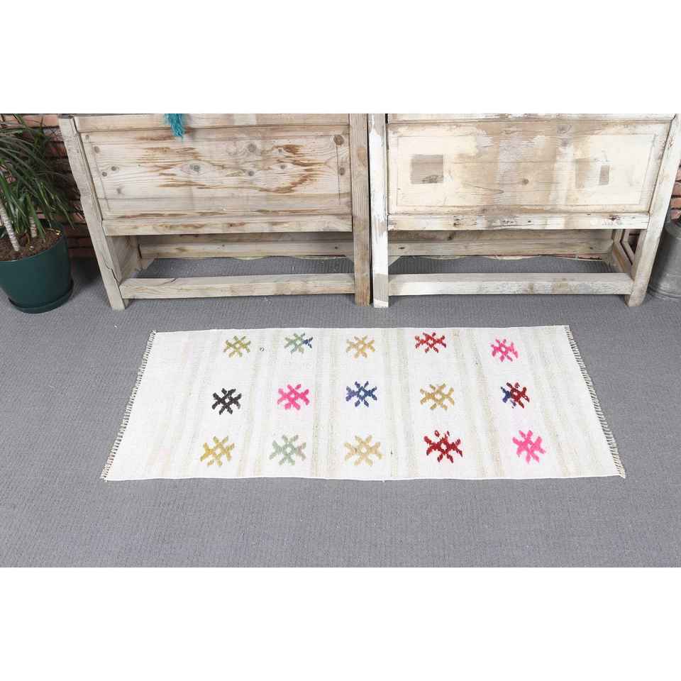 Tapis Kilim, tapis vintage 1,8x3,8 pieds, tapis blanc uni en laine