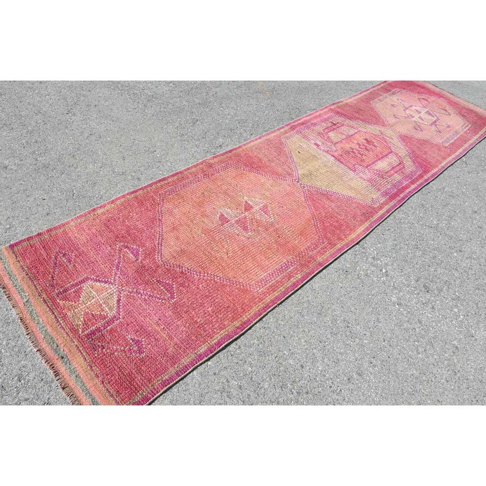Tapis Kilim 2.9 X 10.8ft Rose Orange Tissage Plat Jacquard Tapis Turc Viscose Laine Matériel Peluche Latex Patchwork pour Couloir