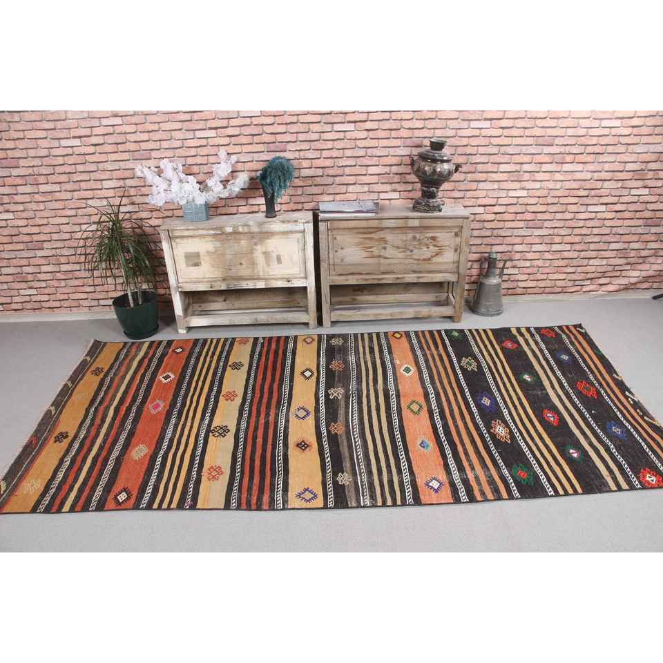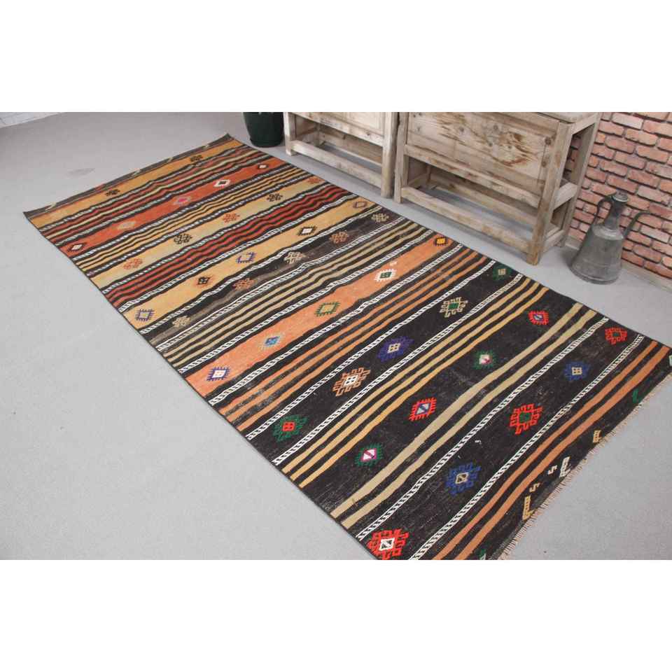 Tapis Kilim, tapis turc de 4,2 x 8,8 pieds, tapis noir à motifs floraux en laine