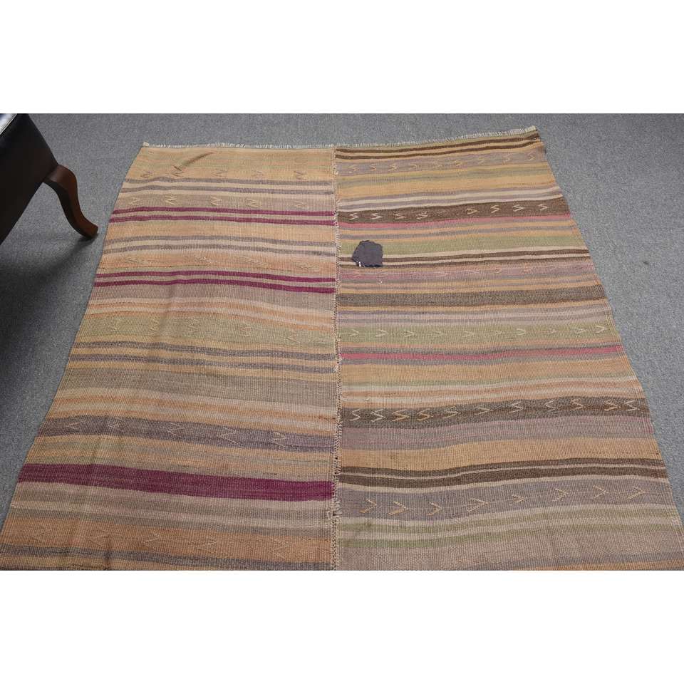 Kilim Rug, 4.3x10.6 ft Turkish Rug, Brown Striped Rug Wool