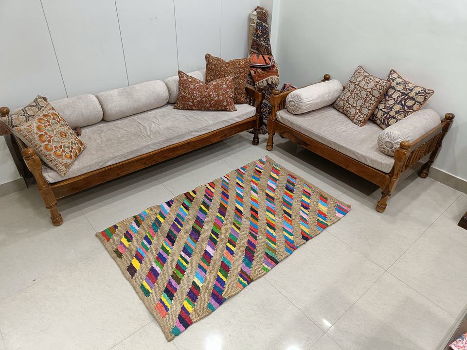 Tapis Kilim tissé à la main 100% tapis de jute naturel avec motif géométrique moderne pour décor de salon