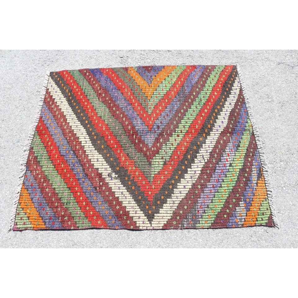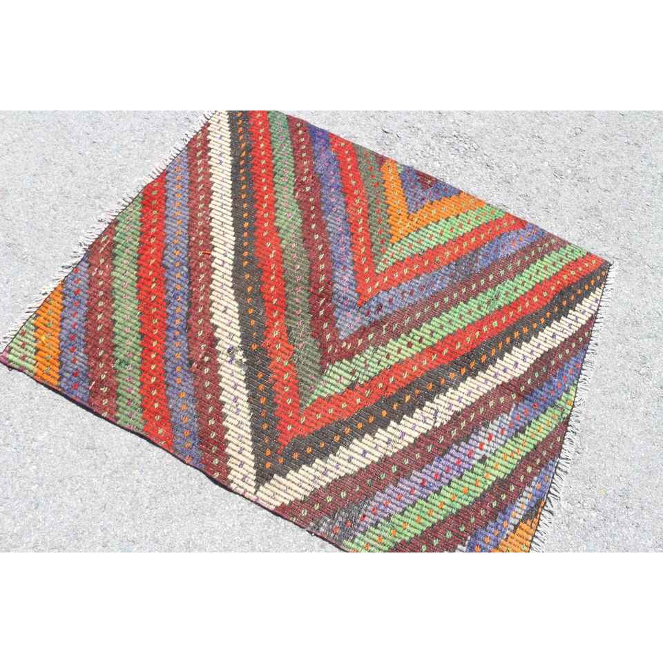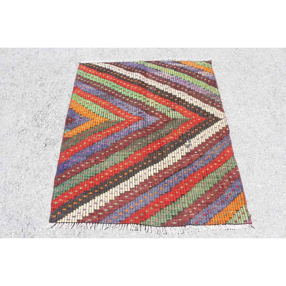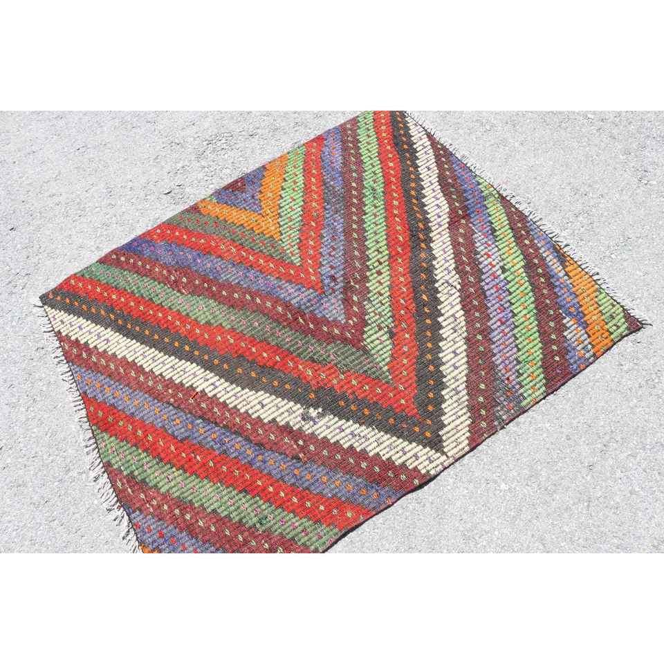 Tapis turc Kilim 3,37x4,1 pieds, vintage, patchwork, laine rouge, tapis écologique avec envers en latex