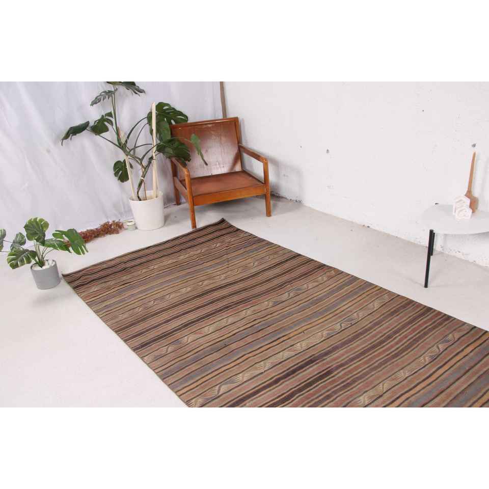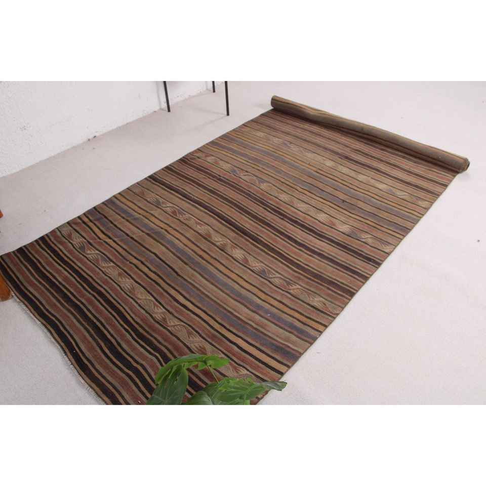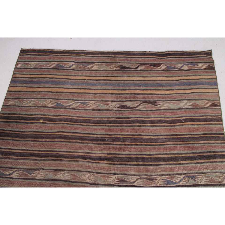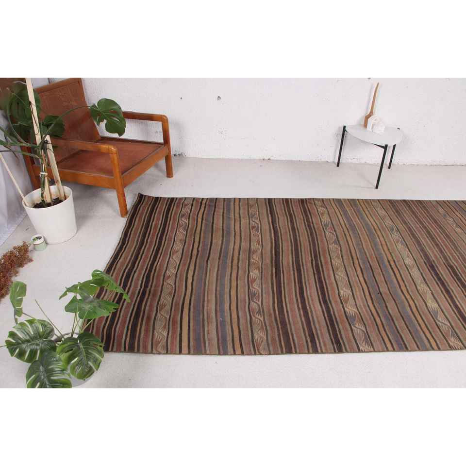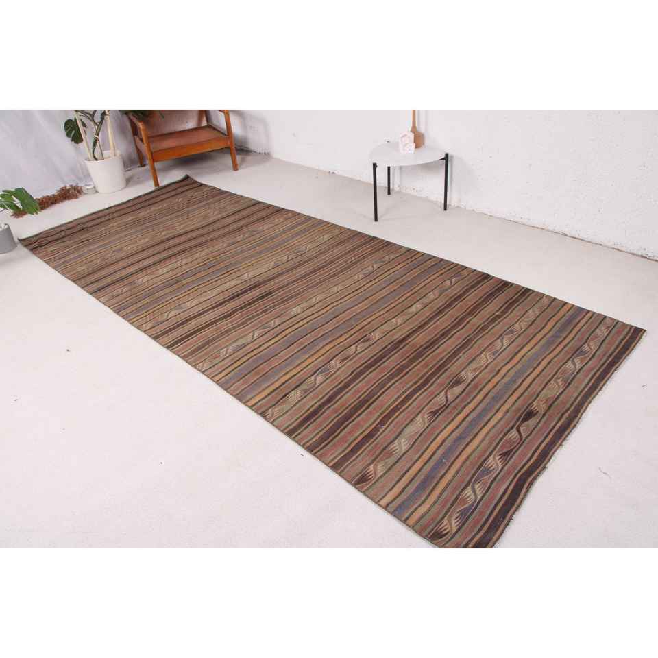 Tapis turc Kilim, tapis vintage 4,4x11,2 pieds, tapis en laine persan brun