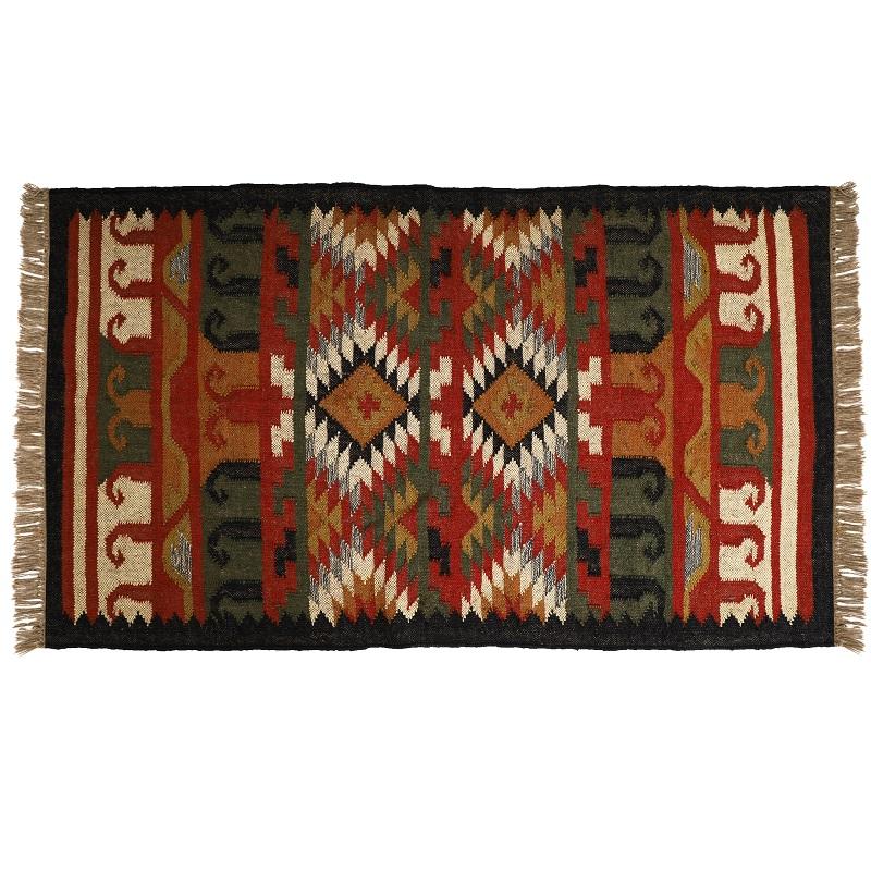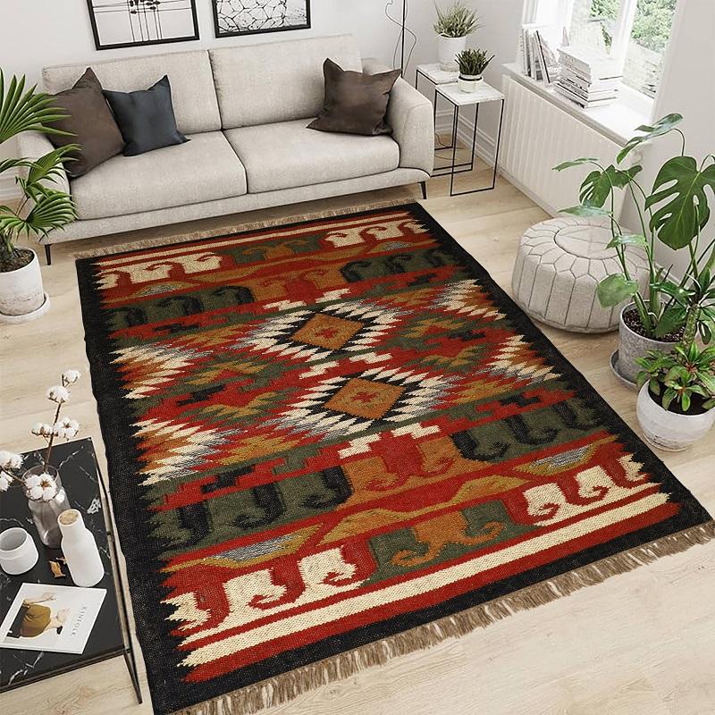 Tapis de jute en laine Kilim tissé à la main pour intérieurs rustiques pour sols de salon et de chambre à coucher.