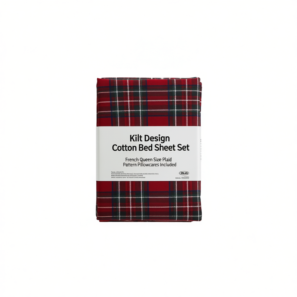 Ensemble de draps en coton motif kilt, taille Queen française, avec taies d'oreiller incluses