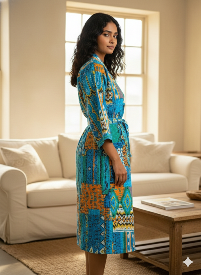 Print Method:Digital Printing, Kantha Kimono