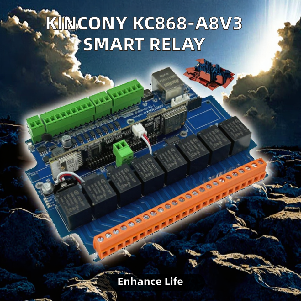 Module de relais intelligent pour maison connectée KinCony KC868-A8V3 8 canaux ESP32-S3 avec écran OLED et contrôle par application WiFi