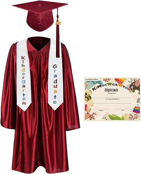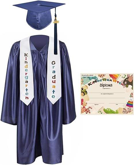 Ensemble de cérémonie de remise des diplômes pour enfants : Robe, toque, étole et certificat pour la maternelle et la préscolaire