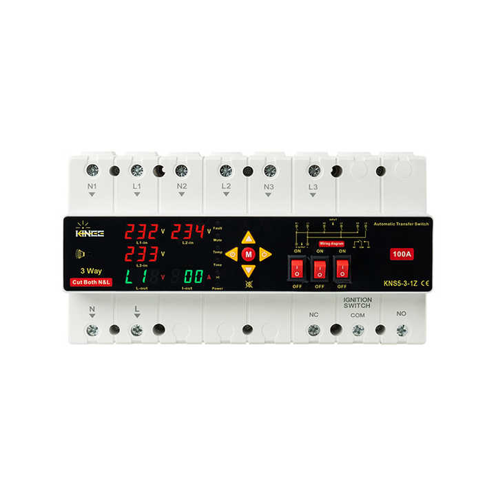 Commutateur de transfert ATS Kinee entièrement isolé 3 voies 100A avec coupe-circuit N&L et protection réglable contre les surtensions et les surintensités