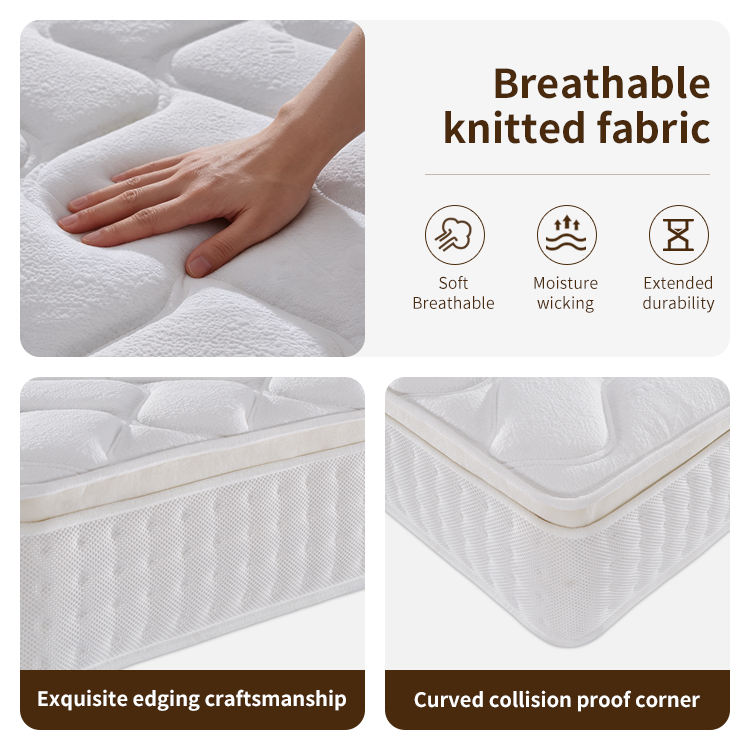 Matelas à ressorts ensachés King Queen Size, respirant, durable, écologique, en tissu de coton tricoté, moderne, pour hôpitaux et écoles, enroulable en boîte