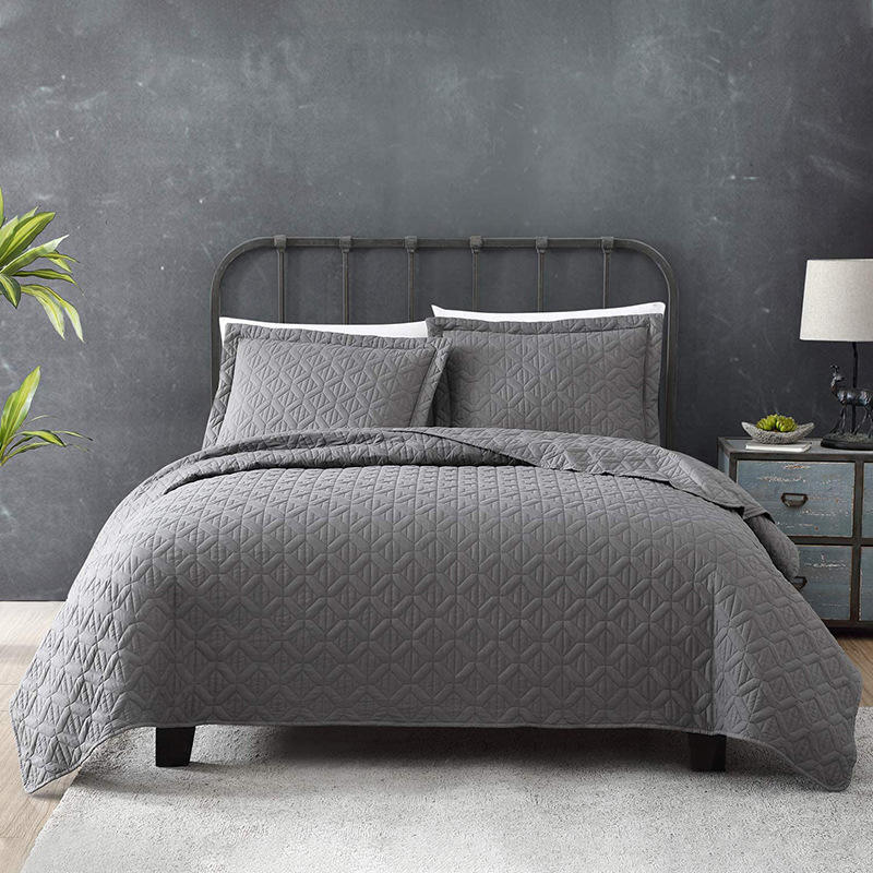 King Size Bedspread Quilted Set 3-Piece Soft Blanket Dark Blue