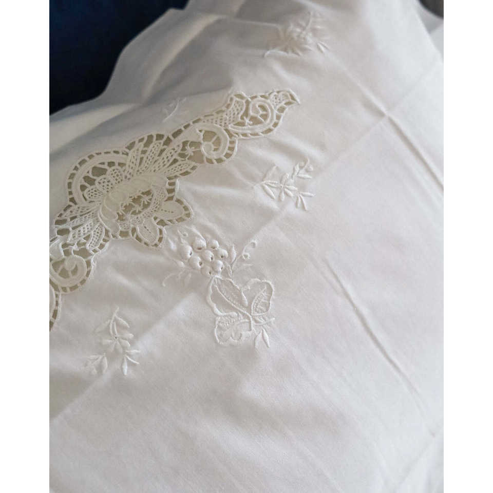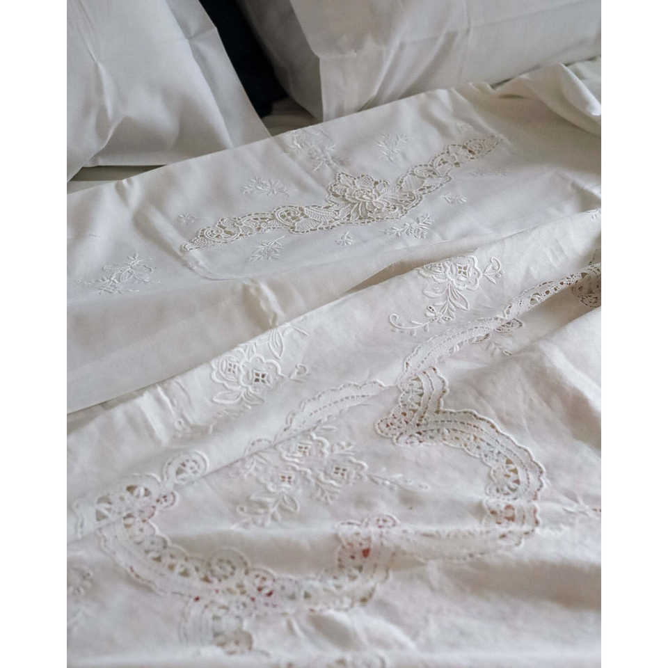 Ensemble de literie double en coton et lin King Size 4 pièces Style uni Dentelle Burano Broderie satinée Logo personnalisable pour un usage domestique