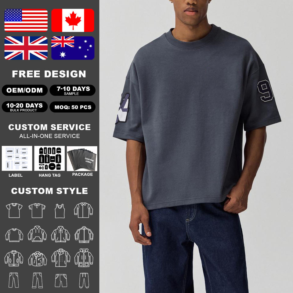 T-shirt homme KingSen Custom respirant 300GSM, coupe ample, effet délavé, logo brodé, style streetwear