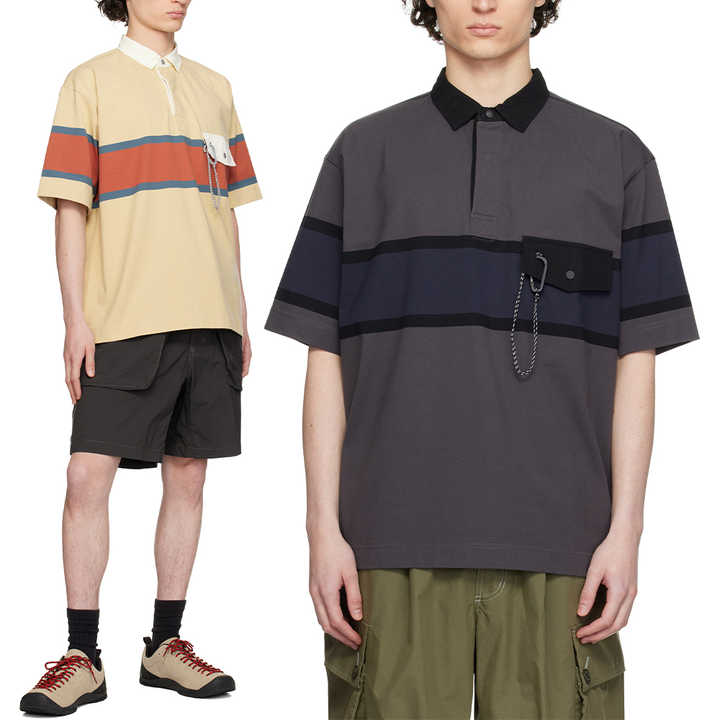 Polo Homme Personnalisé KingSen à Blocs de Couleurs, T-shirt Oversize Rayé à Épaules Tombantes, Manches Courtes en Coton Respirant avec Poche Poitrine