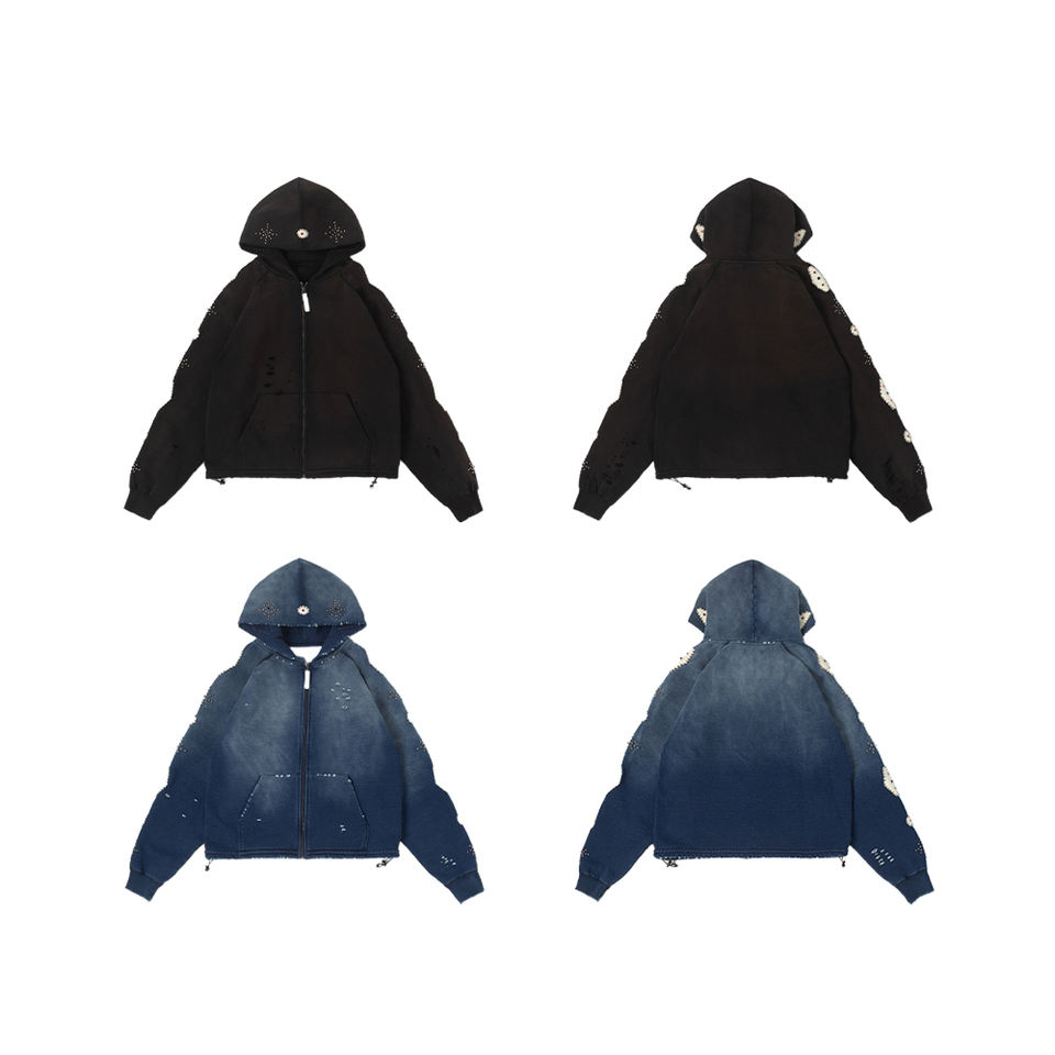 Sweat à capuche unisexe KingSen personnalisé avec strass, fermeture éclair, imprimé streetwear, patchwork, 100 % coton, écologique