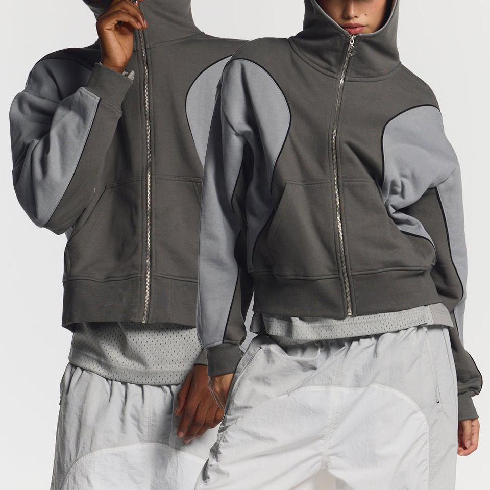 Veste à capuche zippée unisexe KingSen personnalisée, bicolore, en molleton 100% coton, col haut, pour homme et femme, hiver