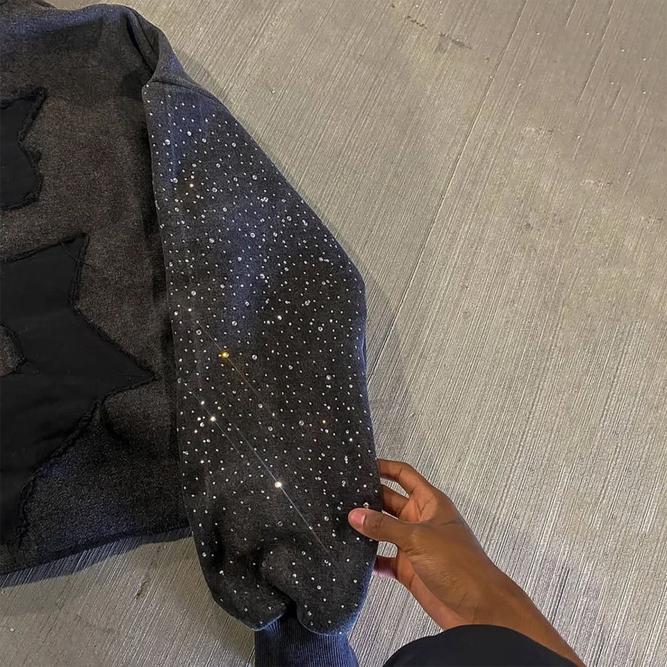Technics:Embroidered, Printed, Patchwork, Washed, Tie Dyed, Puff Print, BLEACH WASH, 3D embroidery, Stonewashed, acid wash, Rhinestone, Chain embroidery