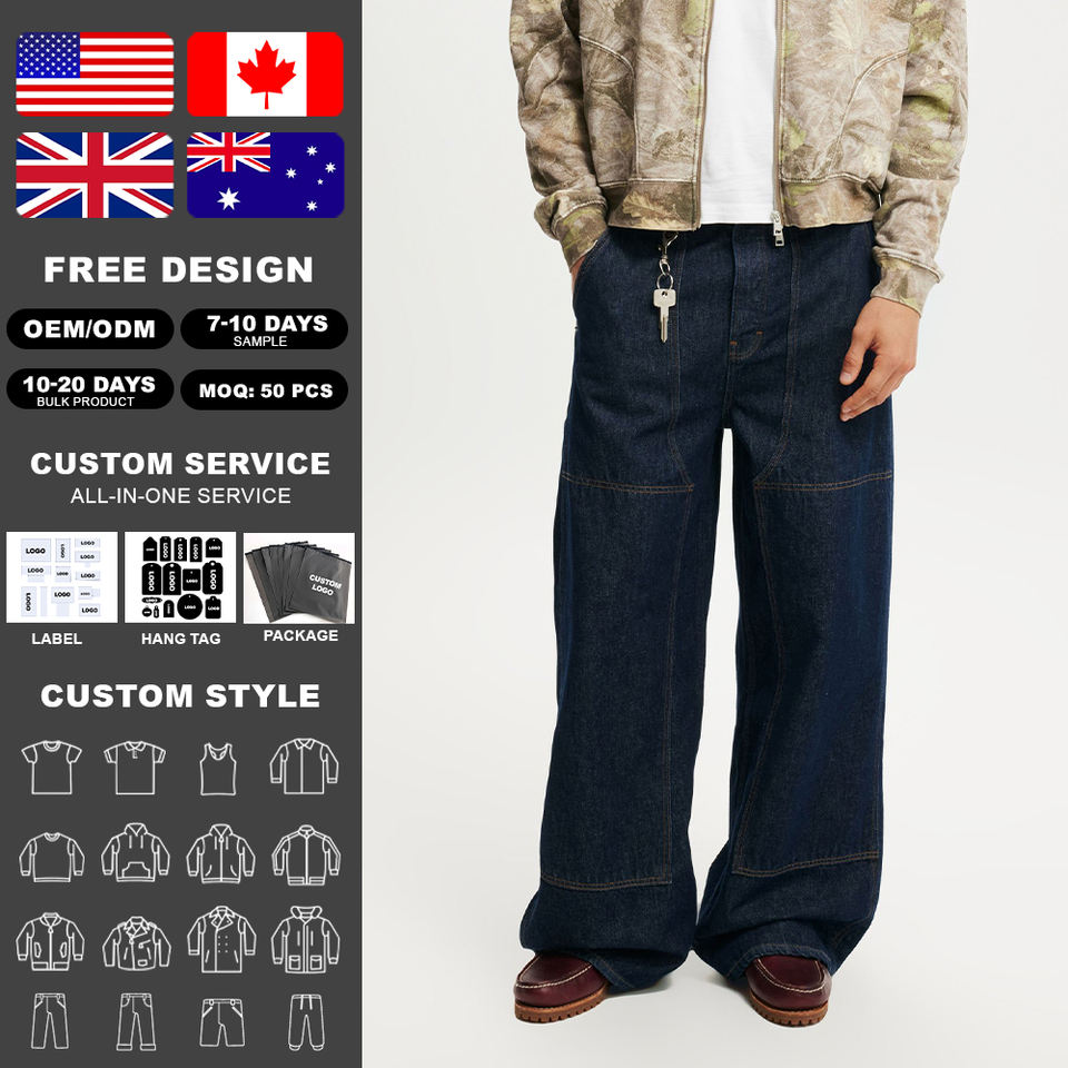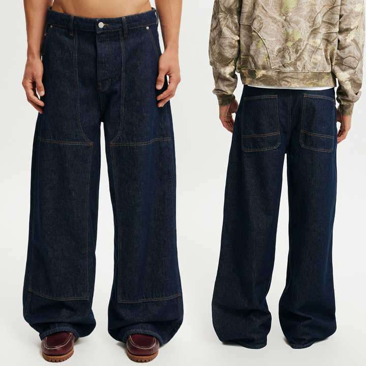Jean baggy large pour homme KingSen, patchwork de haute qualité, denim brut épais, style streetwear Y2K, pantalon rétro de travail