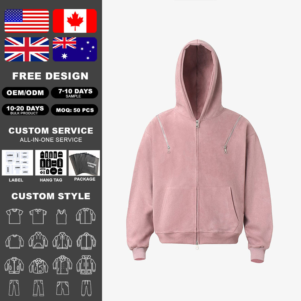 KingSen OEM – Sweat à capuche d'hiver uni en molleton bouclette 100 % coton épais, personnalisable avec logo brodé et multiples fermetures éclair, impression numérique