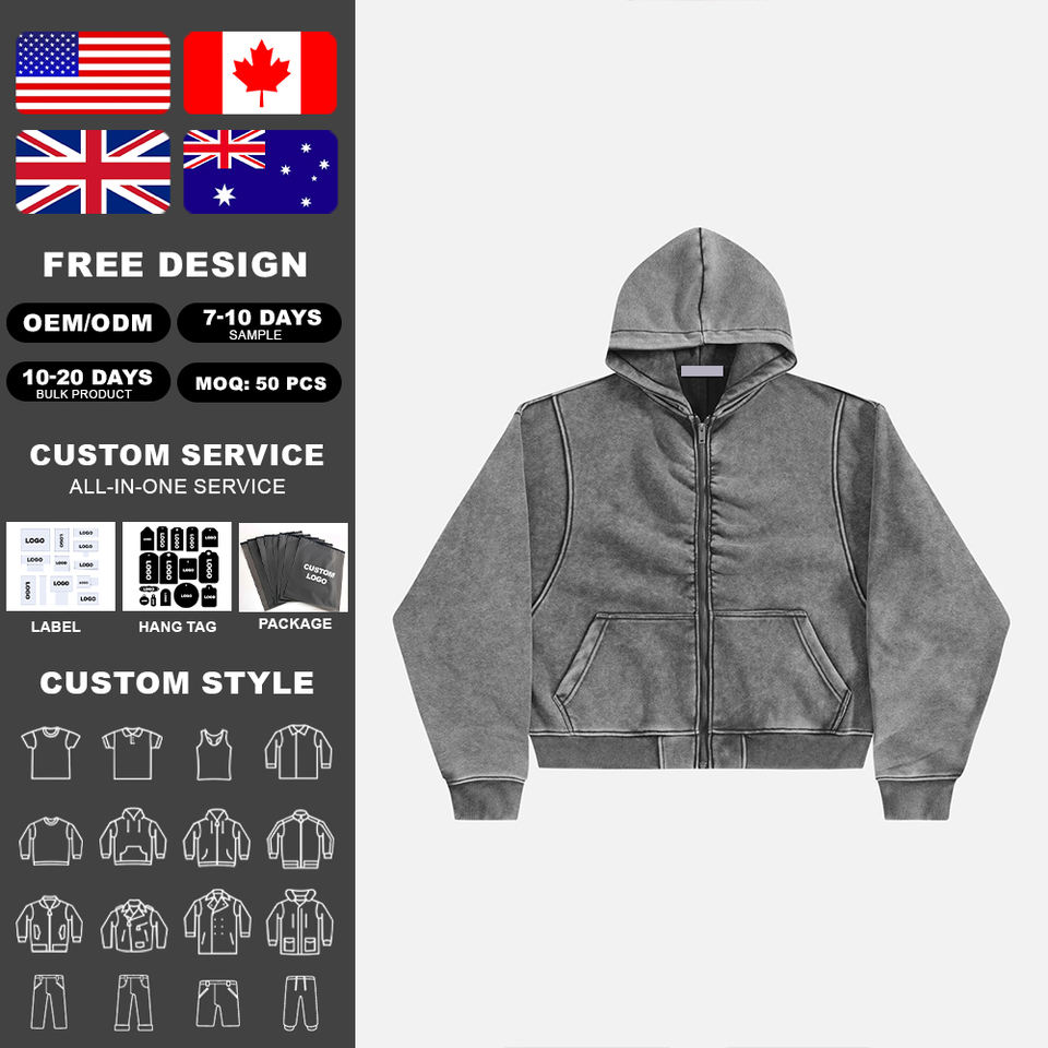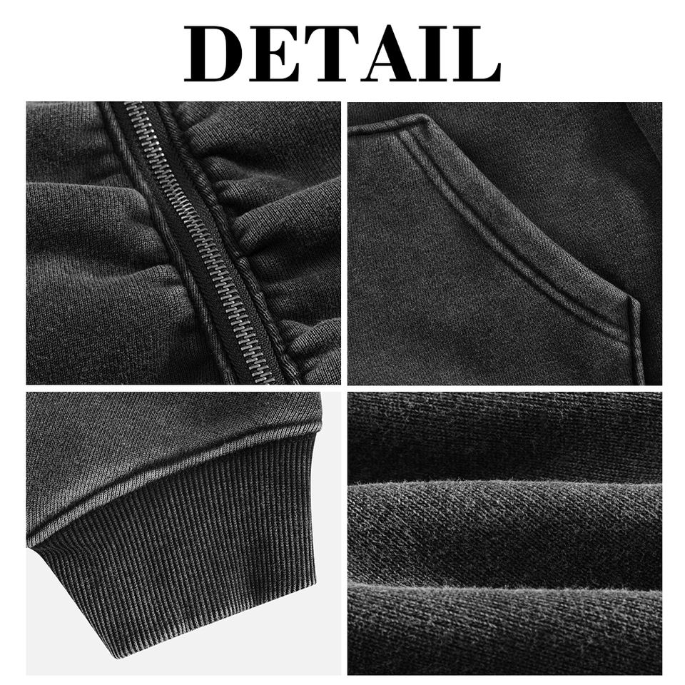 Sweat à capuche zippé KingSen OEM pour homme, en coton molletonné français, délavé à l'acide, brodé, uni, respirant, épais, style vintage hip-hop, idéal pour l'hiver