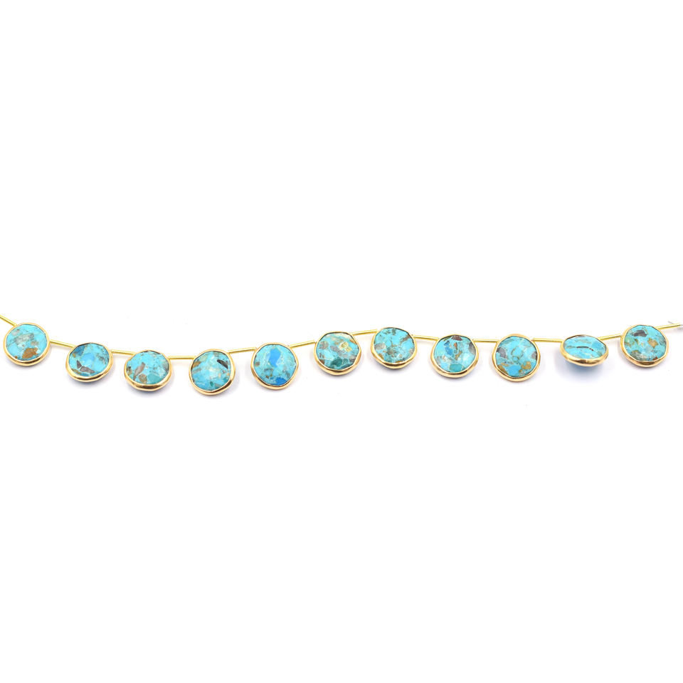 Product Name:Kingman Block Turquoise Gold Plated Top Side Drilled 11 Beads Strand