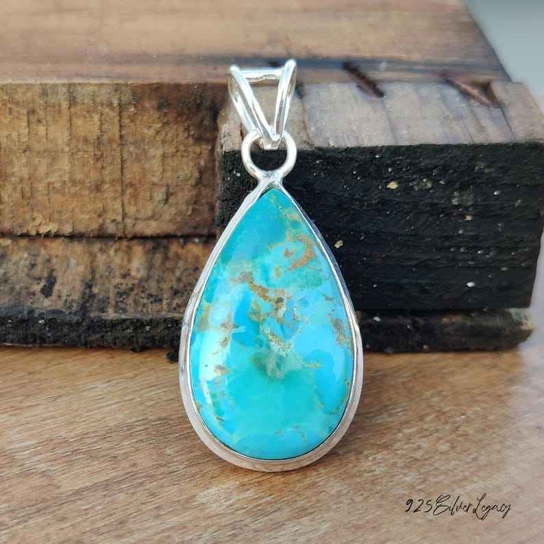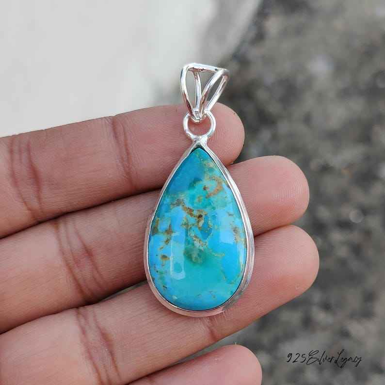 Kingman Turquoise Pendant 925 Sterling Silver Necklace Genuine Kingman Blue Turquoise Jewelry IGI Certified Luxury Tibetan