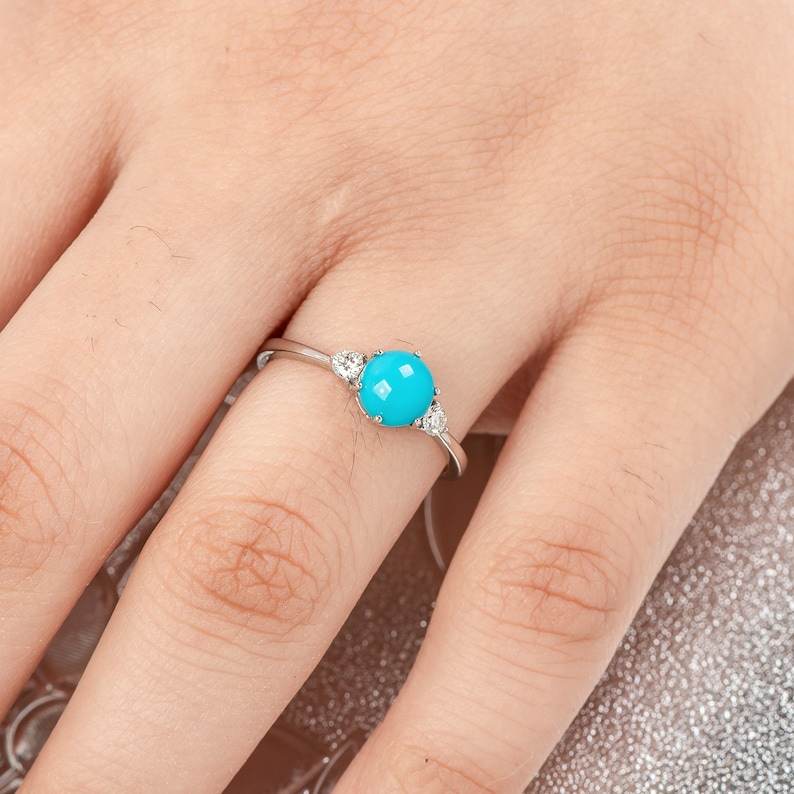 Kingman Bague Turquoise Solitaire Bague Turquoise Zircon Trilogie Bague Minimale Alliance Bleu Cadeau de Fiançailles Pour Elle