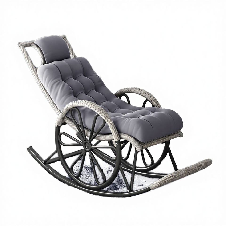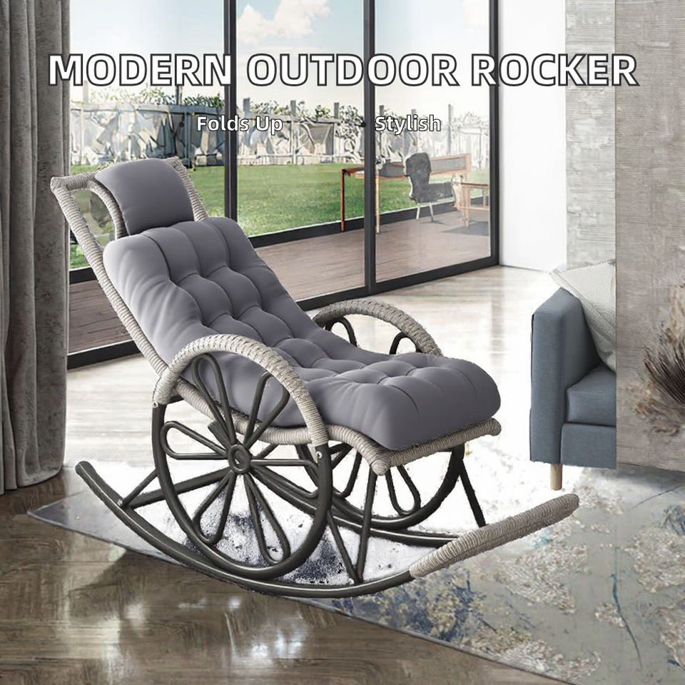 Fauteuil à bascule et chaise longue d'extérieur Kingpower en rotin moderne, pliable, en tissu, pour adultes, idéal pour la sieste, la détente, la chambre, le balcon, la salle à manger, le parc