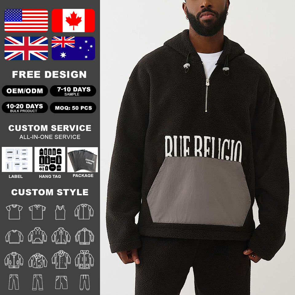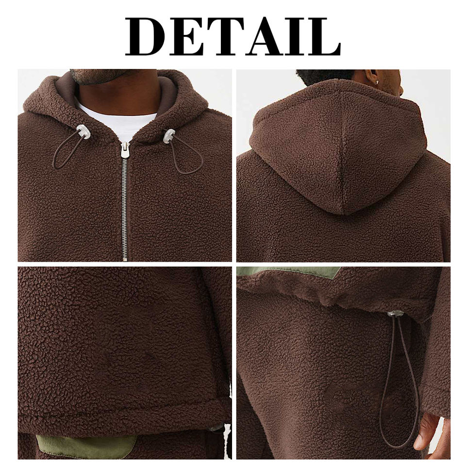 Kingsen – Sweat à capuche personnalisé en polaire Sherpa avec fermeture éclair quart de tour, motif colorblock numérique, pour homme, style streetwear doux et décontracté, 100 % polyester
