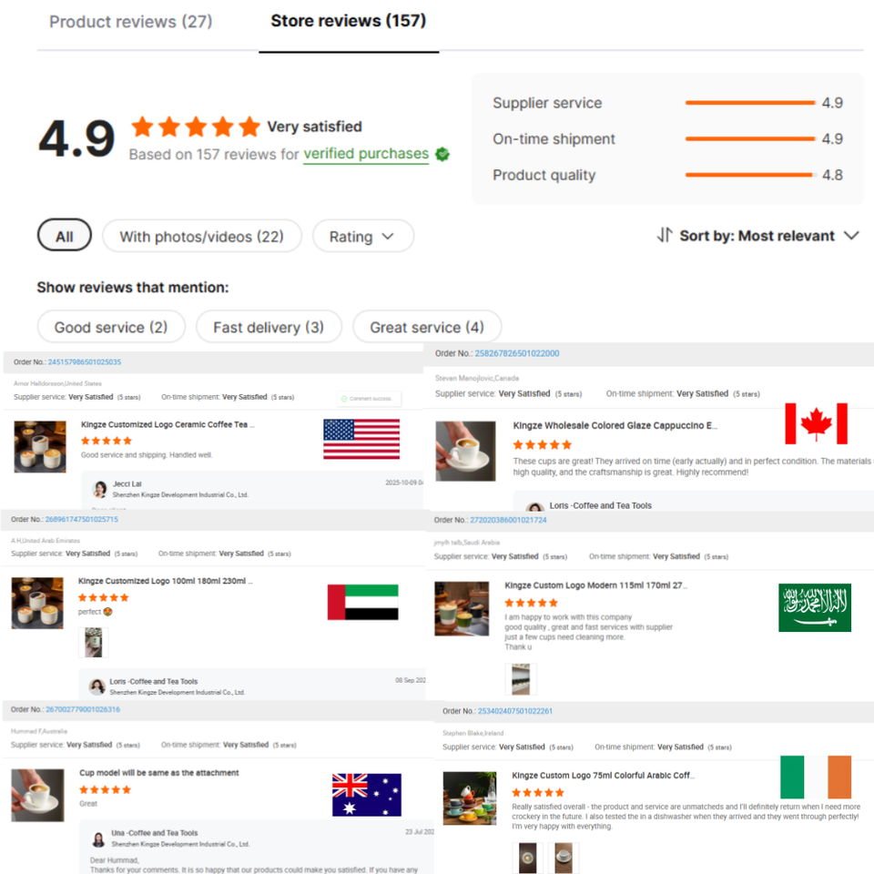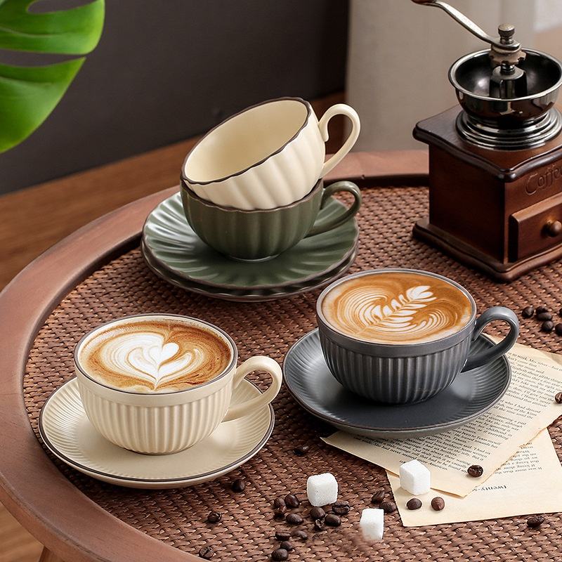 Kingze Modern Design Heat-Resistant BPA Free Safe Coffee Mugs Vintage Italian Espresso Ceramic Saucers Set for Restaurants Cafes