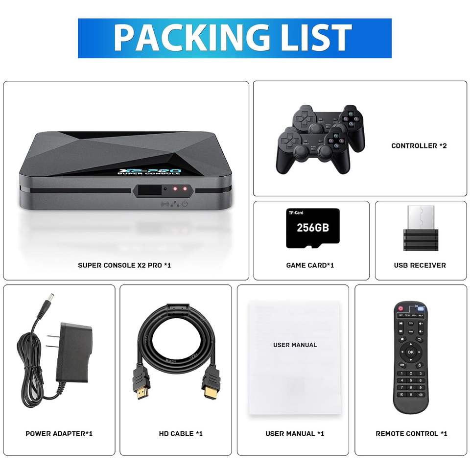 Console Super Kinhank X2 Pro 4K Ultra HD avec 65000 jeux intégrés, Android 9.0, Emuelec, Bluetooth sans fil, extension de carte TF jusqu'à 128 Go