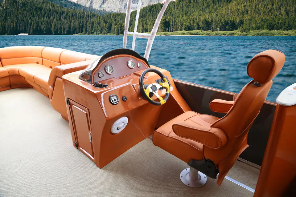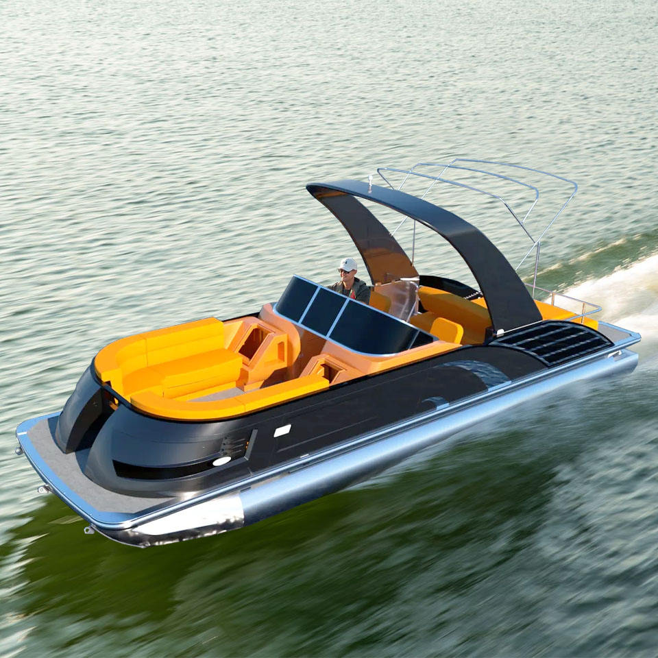 Bateau ponton de luxe Kinocean avec garde-corps en fibre de verre et arche à vendre