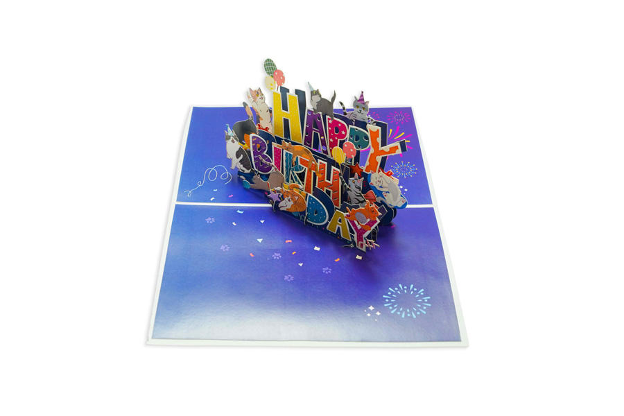 Nom:Fête d'anniversaire avec des chats Pop up carte