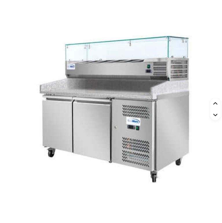Équipement de réfrigération Kit-chen, station de préparation de pizzas avec plateau en granit de 59 pouces, support pour récipients à condiments en acier inoxydable, garantie de 3 ans