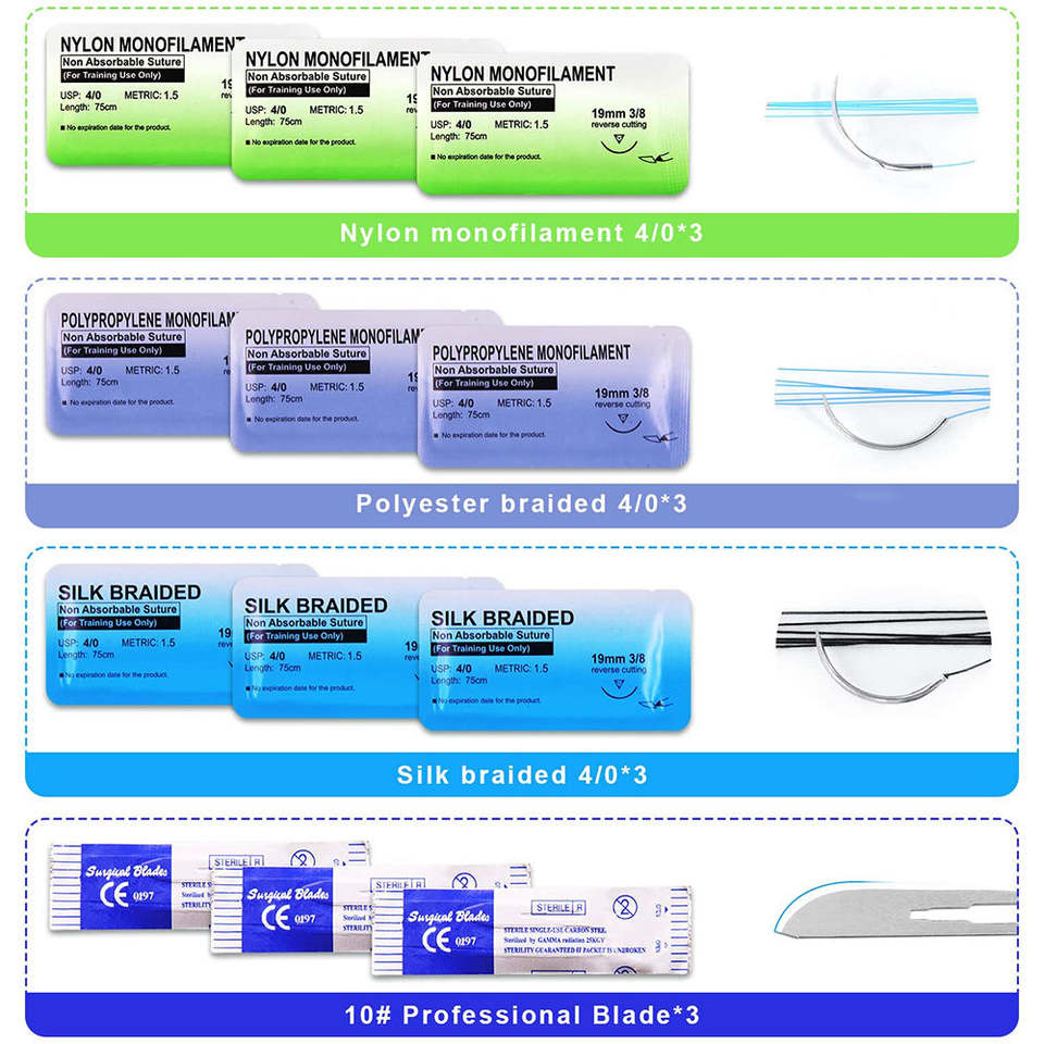 Kit de formation en suture pour étudiants en médecine, comprenant un coussin de suture amélioré avec 14 plaies pré-coupées, fil et aiguille par SurgiRight