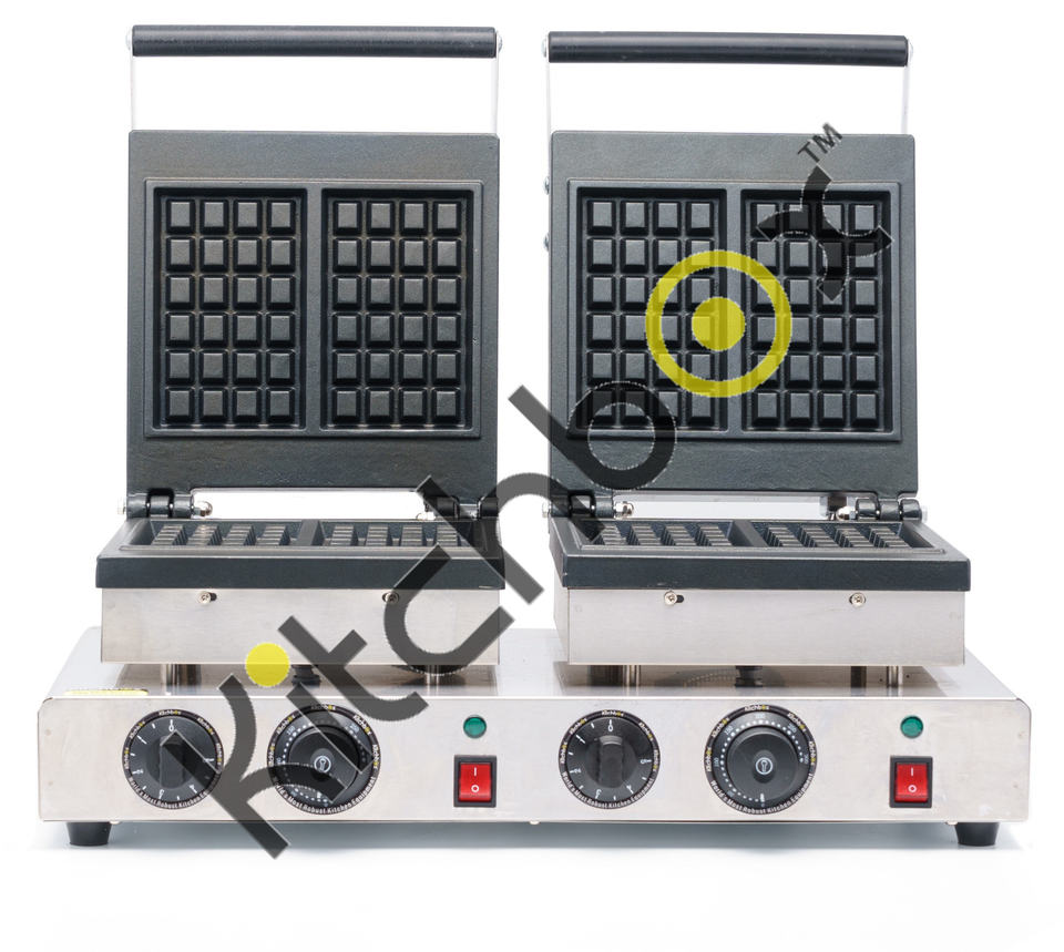 Kitchbox Gaufrier belge industriel et commercial (lot de 4) Revêtement antiadhésif en acier inoxydable 4.000W Garantie 1 an