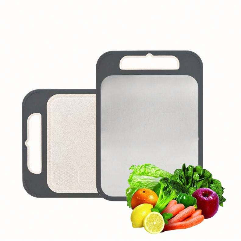 Planche à découper en acier inoxydable 2 en 1 pour la cuisine, planche à découper en paille de blé, double face, planches à découper en acier inoxydable 304