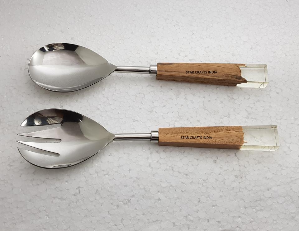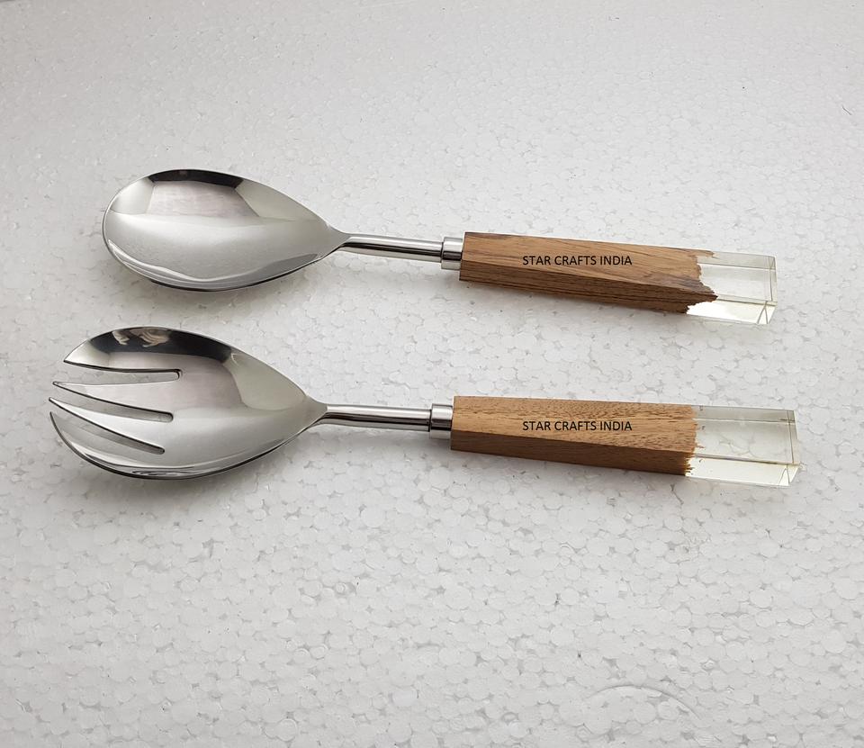 Accessoires de cuisine Poignée en acier inoxydable plaqué argent Fini pour mélanger et cuire la salade Serveur plat ou cuillères de service plat