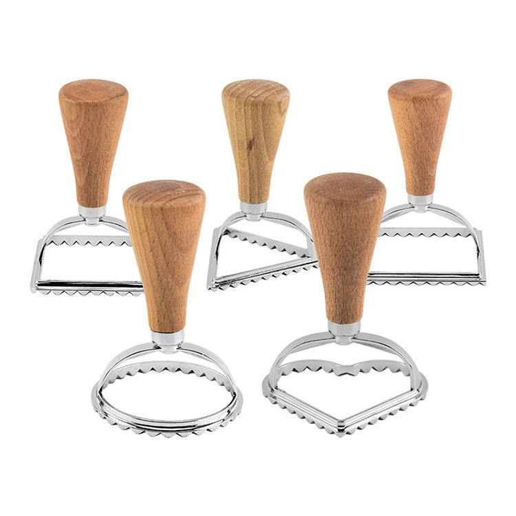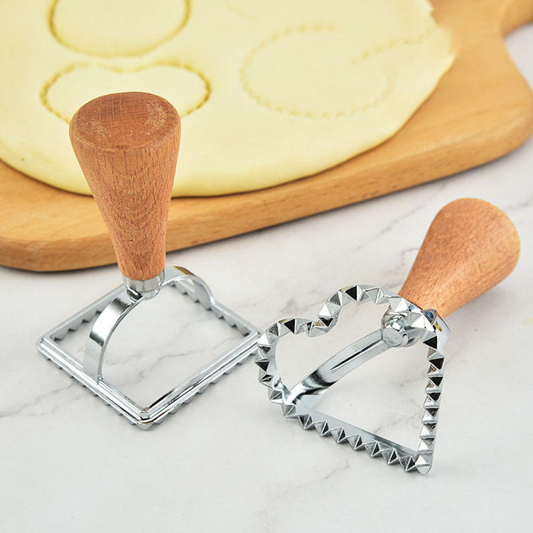 Accessoires de cuisine Moule à biscuits en métal de forme multiple avec manche en bois Bord cannelé