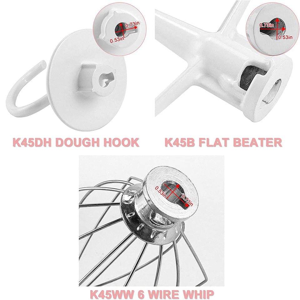 Les accessoires d'aide à la cuisine comprennent un fouet à fil K45WW, un crochet à pâte K45DH et une palette à lame plate revêtue K45B, 3 pièces sur pied pour la réparation des mélangeurs