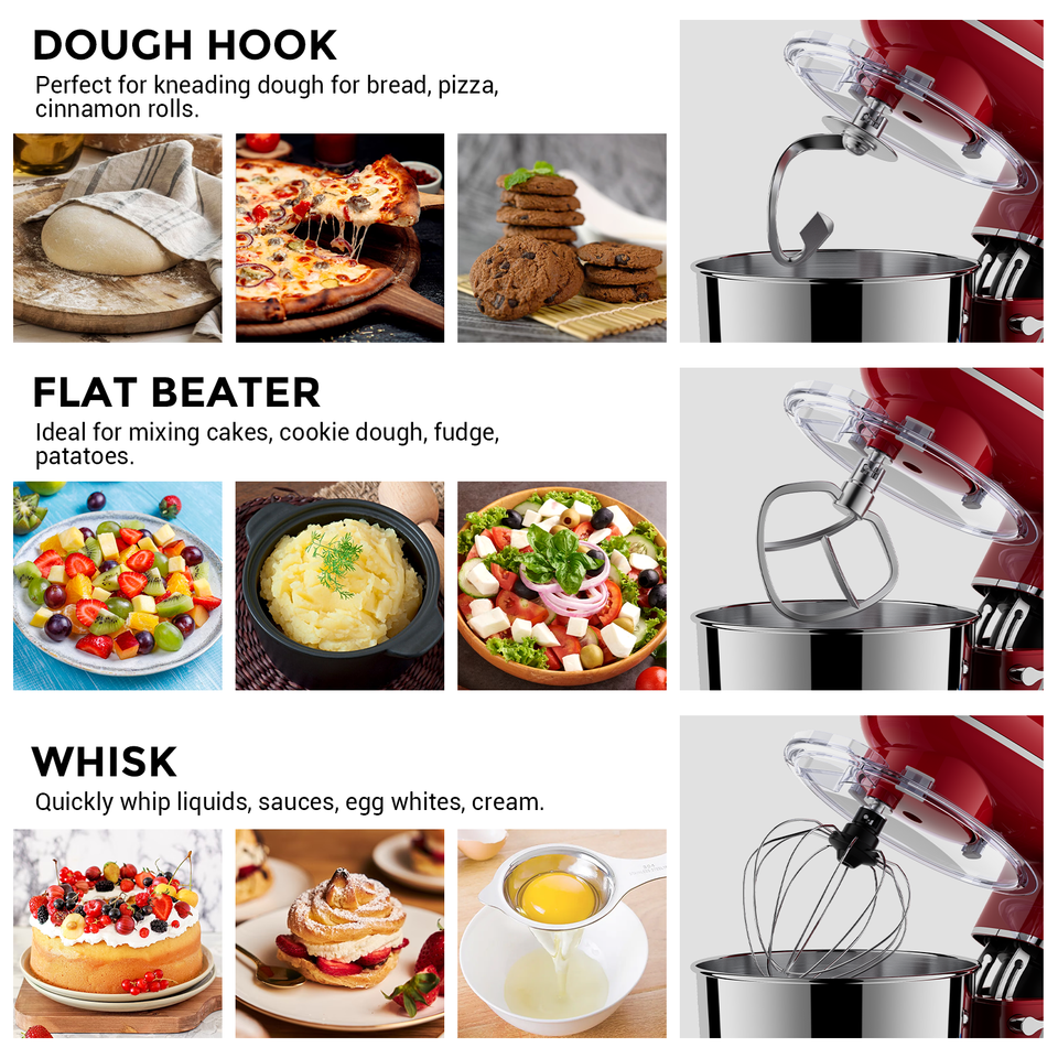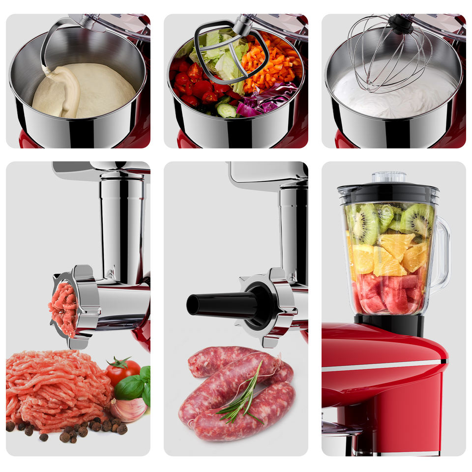 Pétrissage de la pâte + Batteur + Fouet à œufs + Viande hachée + S