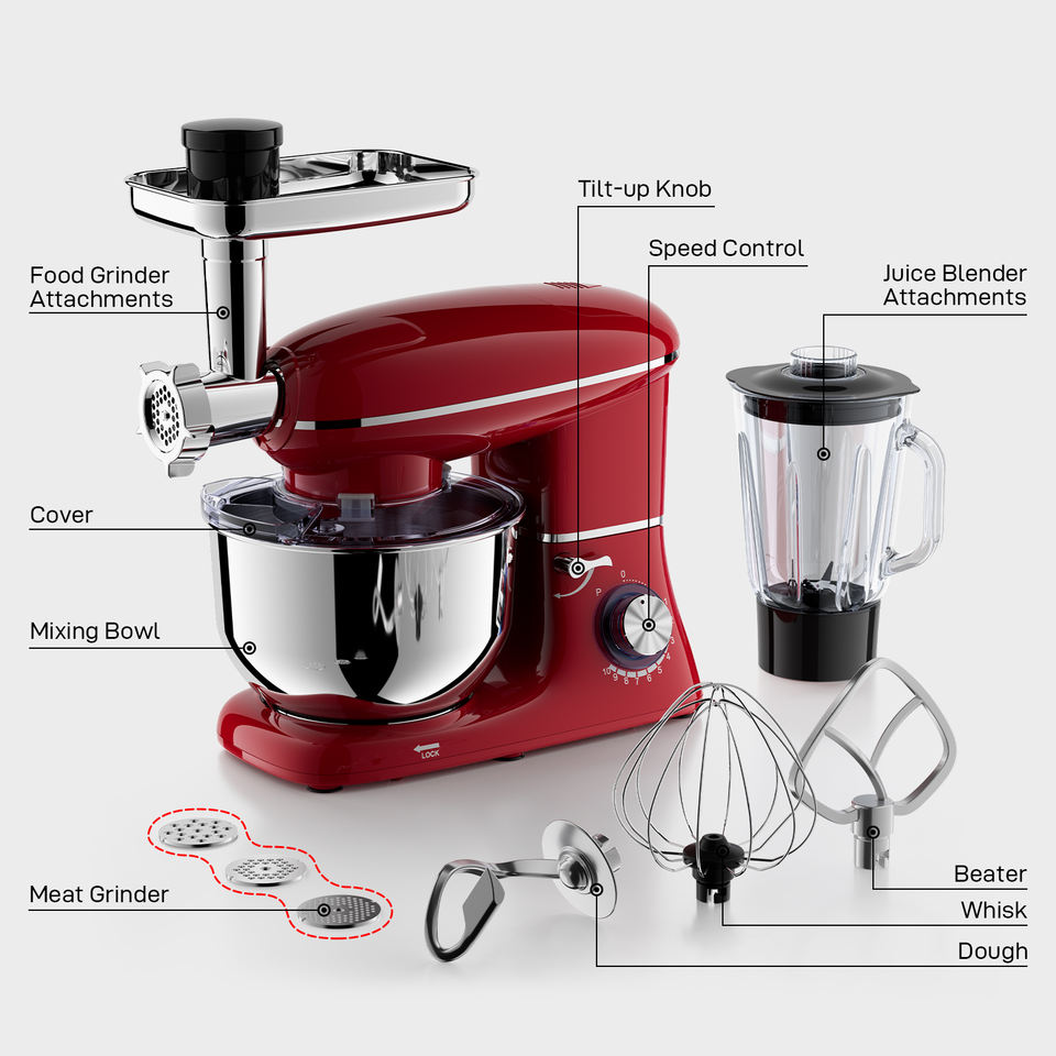 Accessoires:Pétrissage de la pâte + Batteur + Fouet à œufs + Viande hachée + S