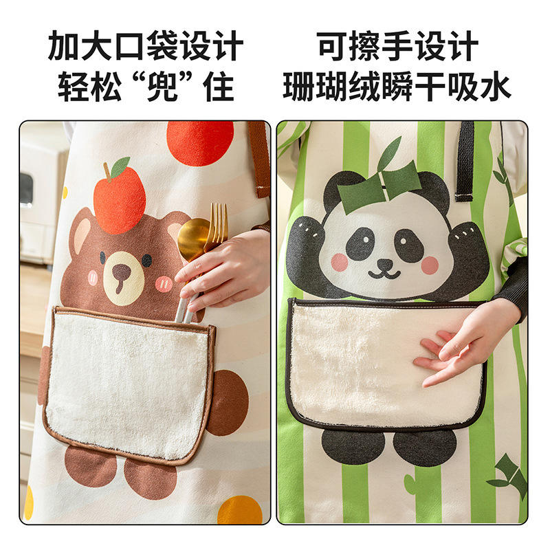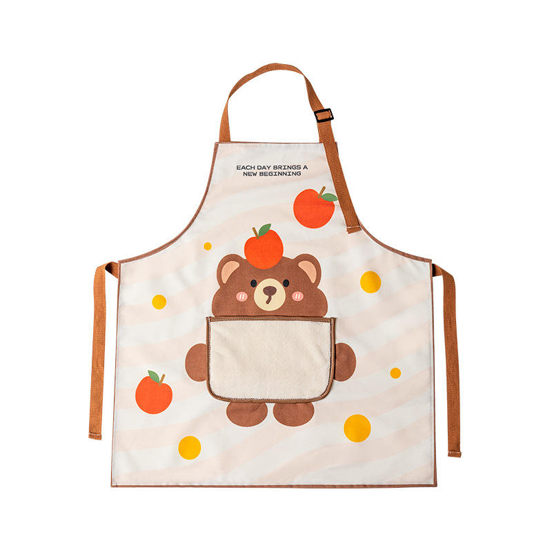 Kitchen Apron Waterproof Oil Proof With Pockets Adjustable Straps Cartoon Bear Design For Cooking Baking Washing